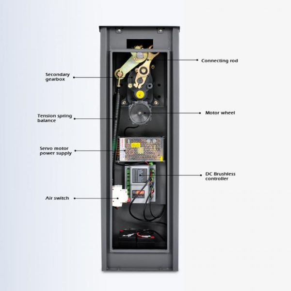 Thank you for purchasing the 5th generation brushless motor barrier gate. This product adopts the latest mold design technology, mold die-casting manufacturing technology, brushless control speed regulation technology, left and right interchangeable quickly, no clutch design, more reliable quality, more convenient to use, the movement adopts two-stage worm gear drive, Three-curved connection rod structure, and the arm works fast and stable. Easy maintenance and long service life.
